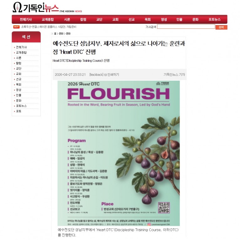 [기사] 예수전도단 성남지부, 제자로서의 삶으로 나아가는 훈련과정 ‘Heart DTC’ 진행(기독인뉴스)